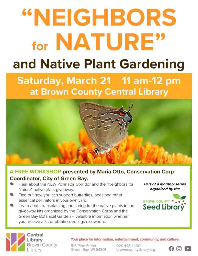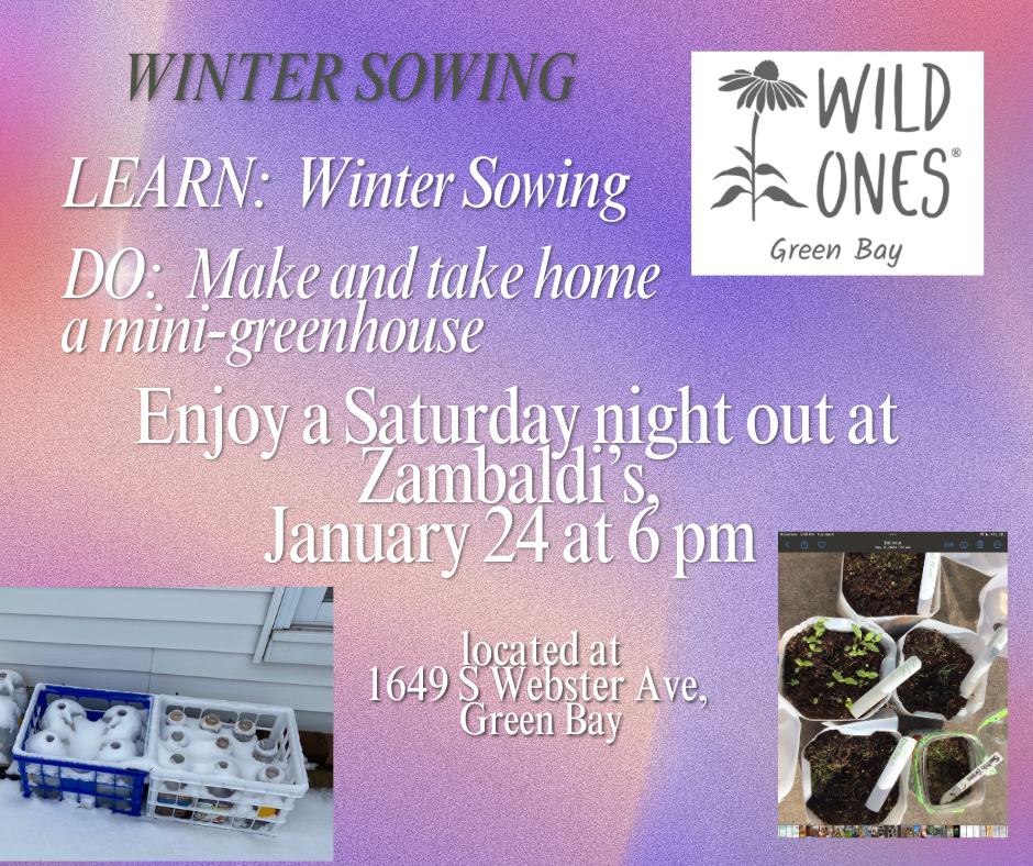 Click the title above which is linked to a news story about how you can help bring pollinators to your yard. You can start with simply adding three plants to your yard; one type of milkweed, one type of mint, and one favorite flower of your choosing. And to really have an impact, encourage your neighbors to do the same. To find out how to start native plants from seed, consider attending our January meeting at the Green Bay Botanical gardens.